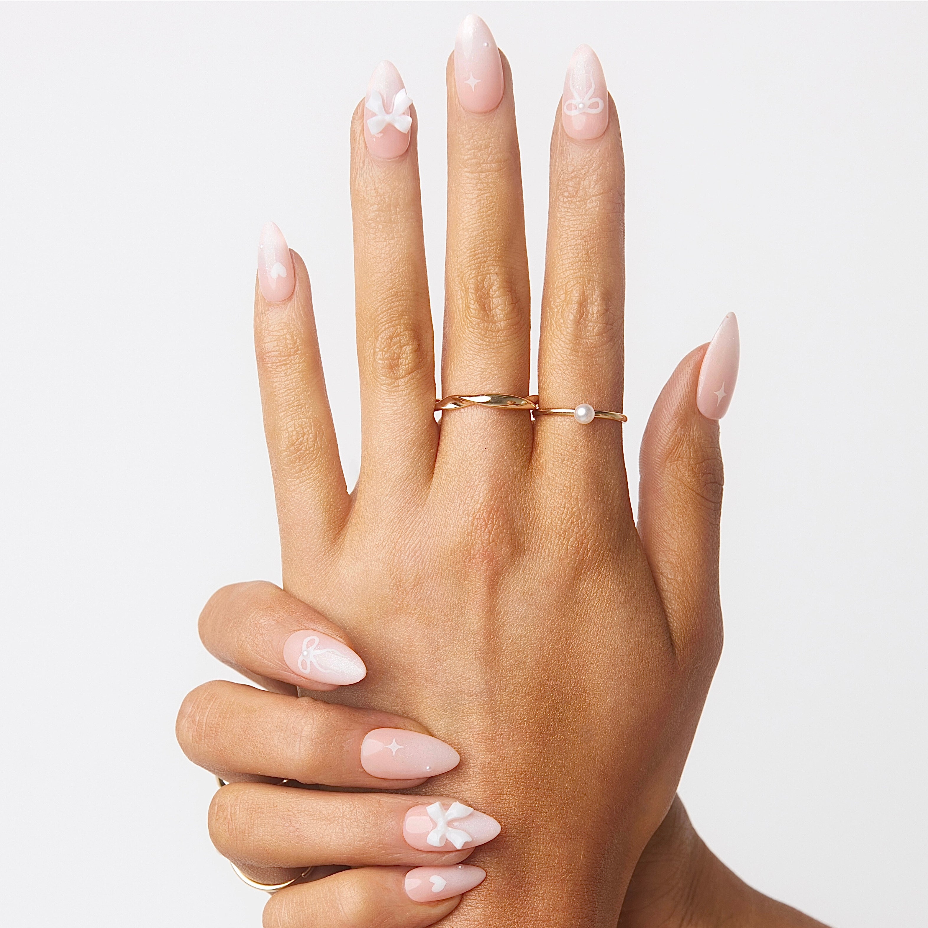 Discover Sweet Coquette — soft ombré nails with 3D bows for a playful, feminine touch.